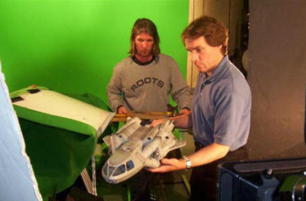 For space bound FX sequences, DP Jim Matlosz and Hawk shot the two spaceship models against green screen on Loyola Marymount’s TV stage. Using Len Morganti’s storyboards as reference, the two utilized what Matlosz refers to as a “poor man’s motion control rig”. But due to time and technical limitations, they were able to capture only a handful of shots of each miniature.